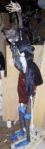 A lot of pre-work went into this one, just like her brother. The clothing used was purchased for cheap. A wire brush, rough hand saw and utility knife came to my aid for the shredding of the clothing. I selectively covered parts that I didn't want to have to bother putting skin on. The hand saw was used extensively to "scrape" the clothing giving it a very ragged look.