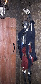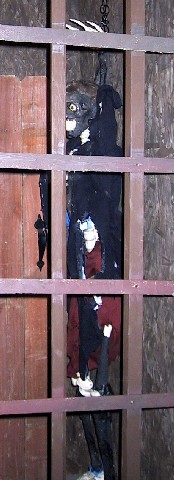 As mentioned on the main page, the pirate prisoner was the first addition to the room after the Jack the undead monkey. He didn't really fit with the original concept of the room, but that's the great thing about a haunted house - no one really knows the difference. (In fact, past experience has shown that few people even recognize a scene from a movie as being such. Most are too busy waiting nervously for someone to jump out at them.)