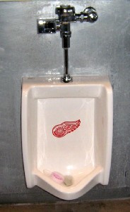 Right: what passes for wacky humor at the R Bar. (Being from Detroit, this should give great offense, but since I don't watch hockey, I just snapped a shot of it for the web page.)