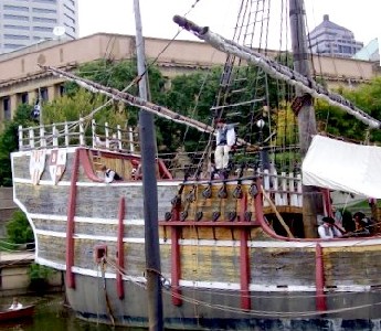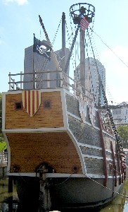 Right: the aft of the Santa Maria, sporting the jolly roger as the pirates take over the weekend.
