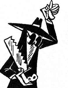 Left: Mission the black spy, with his Patrick Hand original hat, a