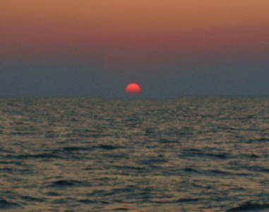 M.A. d'Dogge got some nice photos of the sun setting, probably on the way over. Below left is my favorite. It reminds me of that old sailor saying, Red sky in the morning, sailors take warning, Red sky at night, sailors get tight. (Or maybe I'm remembering the old sailor saying wrong. Although I don't think the sailors would complain much.) Below right, Van Gogh's "Starry Night Sudden Inspiration During the Tedious Six Hour Drive After Spending the Weekend in the Sun." (I'll bet Shannon and Trish stopped at the next convenience store.)