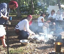 I also met Haunting Lily and her husband (Edward O'Keefe) today. Several folks stained the lanterns that Fayma and Tony Callahan bought for the event. Aminjiria brought what I believe is his entire extended family and staked camp. They then proceeded to make food for everyone in the site (except us vegetarians...alas.) Willie Wobble set up the neatest spread I think I have seen (he has a very comfy looking cot). The crew is forming up!