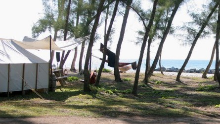 November 27, 2007, PM I helped scout the Mercury/Archangel camps in the park at Fort Jefferson with William Red Wake from the pyracy pub. It's a cool site for camping. Scattered leaning Australian Pines dot the sand. (The park folks don't seem to fond of them, but they look neat, all leaning away from the water and the wind). It has a sort of artistic flair.
