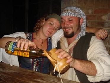 Left, Stynky Tudor and I at the pub on Saturday night drinking...well, some one of many things (Rum? Mead, Who knows?). I appear to be the one who is stynky...stynking drunk!