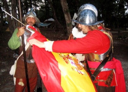 Spike then threatens the conquistadors with banishment to the time period in which they belong (above left) if they ever try to pin a crime he didn't at least have the enjoyment of committing on him ever again. The conquistadors then retreated back to their camp where they finally got rid of that gaudy flag William had been carrying all day (above right). The end. Now go to sleep.