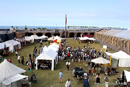 There were also various displays like the fight circle, games for the kids ("TREBUCHET!") and a lovely view of the park from the top of the fort wall. The fort was under re-construction this year, which you'll note in the photo at right - along the right hand side. Since this area had been fenced off last year, being under repair was an improvement.