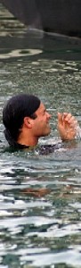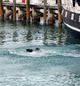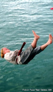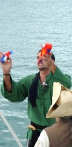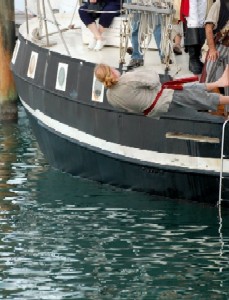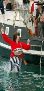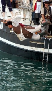 The event is pretty self-explanatory. You have to walk the plank. Of course, point are awarded for style and that is the interesting part. It still pretty well results in what you see at left. This year some prat from the Discovery Channel was involved in all of this. He's trying to sell a show on entering weird contests to them. So he's was around as well.
