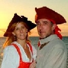 Above left: Pick a better role model, kid. Seriously. Above middle: Captain Jim complaining about the food...and then (after who knows what happened) deciding it's just right. Above right: Stynky Tudor playing at the beach. If you have not met him, he is one of those pirate re-enactors you really must put on your short list of those you want to meet.