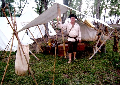 I espied Papa Ratzi shooting dusk pics at the water's edge, so I decided to go down and shoot some as well, just so everyone could compare my work to Papa's and see just how inadequate my photography skills are. There I met (and wound up having to hug) a dozen people, several of whom I don't think I actually knew. This was a weird experience for your typically "no touch" ship's surgeon. I have run into several people who weren't here last year, including Master Sully (below center), who told me outrageous lies about Patrick Hand being extraordinarily drunk the night before. I guess it rained, which jumbled Patrick's compass.