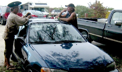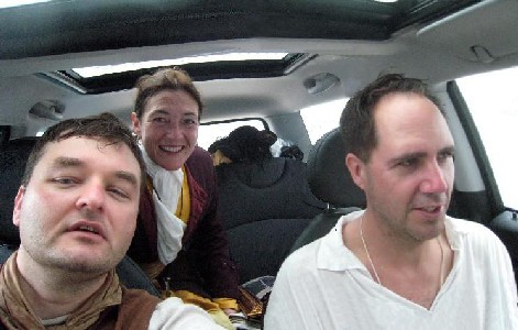 The small gale outside the car let up and we all got out of our courageous little Mini (below left). Fortunately, Michael Bagley was on-hand to see that everyone safely egressed from the automobiles (below right.). I can still hear him saying, "Remain calm! All is well!" (Note: this is yet another Animal House reference for those of you who are counting. It is also an unmitigated fabrication.)