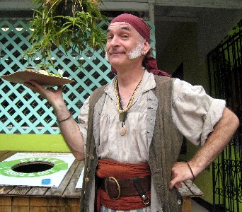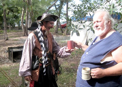 Realizing I now had two other poor unfortunate souls' mugs because I was caught in Stynky's twisting web, I decided to be kind to those missing their beloved mugs and post the photos of them on the Pyracy.com website. Willie Wobble claimed the barrel mug, so I sent it to him. Nobody claimed the other mug. Finally, Harry said he thought it was Deadeye Rick's mug. Of course DR has no way of knowing about this since he doesn't go on the internet (he can't read the screen because his eyes are so bad.) So I kept it all year, intending to bring it to him this year. Unlike Stynky, I wouldn't willingly inconvenience someone who is technically legally blind.