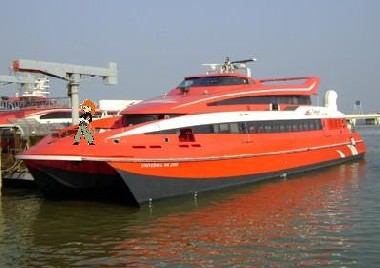 that Mark mentioned. (KP could hitch a ride on one, tho'.) The storm reminded Mark of their trip in a ferry going to Macau (I believe it was Macau), Hong Kong . I guess the boat trip there was pretty regular, but on the trip back they went through what they described as hurricane-like weather. The ship was designed to do this because it apparently happened regularly. Mary noted that on the trip back, everything was smooth coming out of the harbor, but as soon as they left its safety, the waves started. It eventually became a roller coaster ride; one that lasted an hour. She said that people were actually yelling "Woooo!" and putting their arms above their heads during the first few minutes of the waves as the ship would climb one side of a wave and then tumble down the other. She said that many people who were conversing during the trip would calmly pause to throw up and then continue their conversation as if nothing had happened.