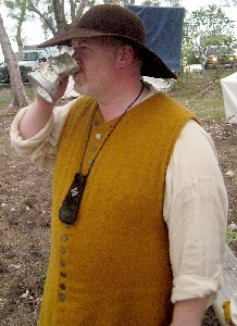 Back at the camp, Deadeye Rick happened along. I had given the mug I had kept all year to Callenish, who returned it to poor Rick. Rick told me he had long given up hope on ever getting it back. He had borrowed money from his poor starving mother to purchase another one last year. Finding the original was still around, he was delighted. He sentimentally pointed out a scratch on it where he had fallen upon it during a battle. He eventually hung it on his belt right next to the new one.