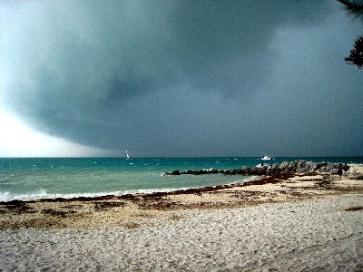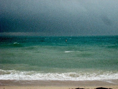 admired the greenish blue glow of the ocean as the storm clouds continued