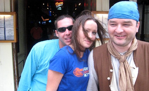 On the way back I wound up walking my bike along Duvall because it was so crowded. A young couple spotted me and insisted I pose for a pic with them. Since turnabout is fair play, I insisted they pose for a pic with me (left)